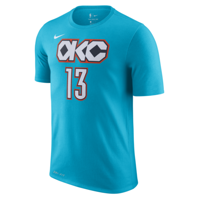 全力支持家鄉球隊。Oklahoma City Thunder City Edition Nike Dri-FIT 男款 NBA T 恤以柔軟排汗材質製成,圖案的設計靈感則來自 City Edition 制服,還會印上你最愛球員的姓氏和背號。
