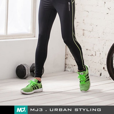 獨家的超熱賣款! CP值爆發!【MJ3】撞色線彈性運動九分緊身褲-男-神秘黑(慢跑、路跑、運動褲)不錯用喔