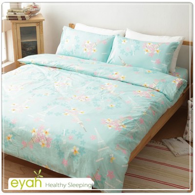 【eyah】雙人加大四件式精梳純棉被套床包組(LV夢幻花園-悠藍)