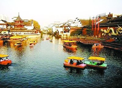 憶秦淮秦淮河畔夜笙歌,往日風華讚嘆多,盛況光芒輝萬代,六朝金粉霸綾羅。(二)一東水面呈藍煥媚風,笙歌響遍夕陽紅,秦淮慨嘆鶯群聚,褪盡金華圖霸空。