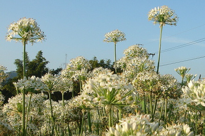 韭菜花開韭菜花開艷滿空,迎風一片白濛濛;嬌姿獨特超嬌美,傲視群芳韻味豐。