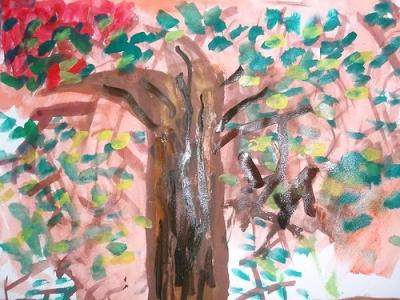 部落格專用相簿<榕樹> 農舍階前一古榕, 枝長葉厚密隂濃, 讀書運動來人眾, 勵志強身志一同。