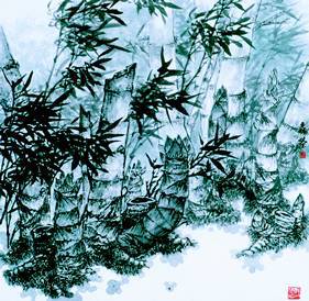 <春江煙雨>霜冰散化水流東,又見春江煙雨濛,遍地芬芳飛蝶舞,梅花謝盡桃花紅。