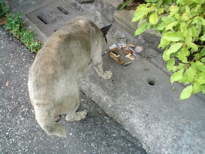 一次、二次…到今晚,我站在阿狗窩前的路燈下,拿著飯盒猶豫著不知道是否該放下,路燈桿的週遭似乎被清理的很乾淨,沒有多餘的便當紙盒和盛水的紙碗
