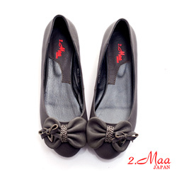 2.Maa 小資女孩最愛~小羊皮QQ蝴蝶結圓頭娃娃鞋-簡約灰