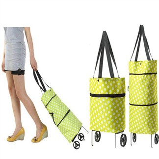 PS Mall 圓點牛津布折疊兩用拖輪環保購物袋
