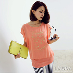 OB嚴選0823新品 流行品味~質感金色字母假兩件造型長版上衣‧3色』