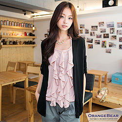 OB嚴選夢幻逸品~後拼蕾絲荷葉感假兩件長版上衣‧3色』