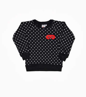 火紅的面具,搶眼的點綴在黑夜中,就像超人總在黑暗角落拯救受到危難的人們,這款純黑的厚tee,是件專屬於冬天的設計,上面的無數小點點,就像是一顆顆發光的小燈,雖小但聚集後無比閃亮,小寶貝穿上身,就是如此吸引眾人目光。