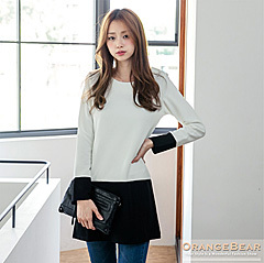OB嚴選1023新品 氣質優美~質感面料撞色拼接長版上衣2色』