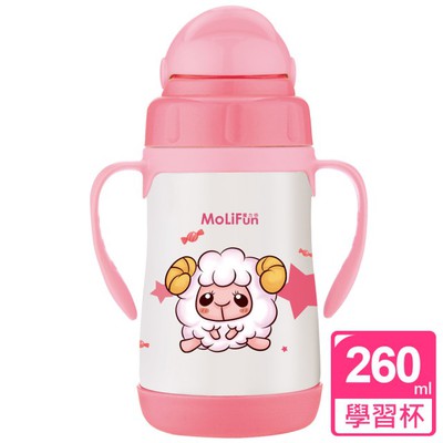 momo網 超CP值婦幼品 運動好物推薦分享【MoliFun魔力坊】260ml不鏽鋼真空兒童吸管杯-學習杯(寶貝羊) 創