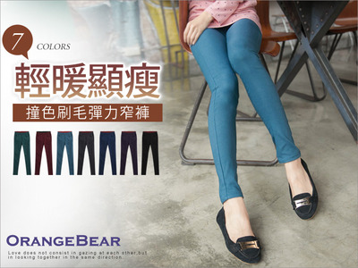 OB嚴選 夏季款出清熱賣1216新品 輕暖顯瘦~嚴選腰圍撞色刷毛彈力窄管褲-7色 柯P