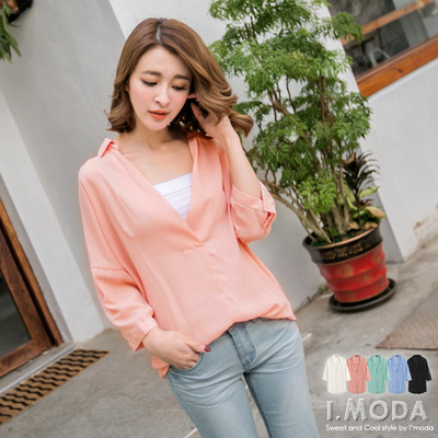 OB嚴選 夏季款出清熱賣0319新品 都會休閒~V領半開襟雪紡七分袖前短後長上衣-5色 伊斯蘭教