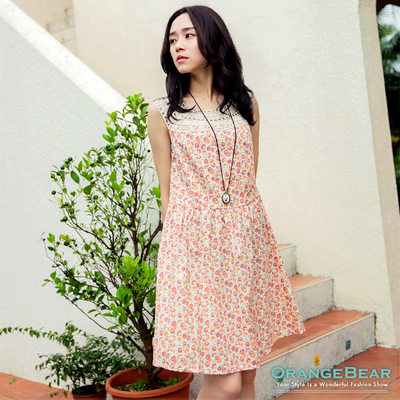 OB嚴選 夏季款出清熱賣【春氛特賣】浪漫序曲~鏤空蕾絲領小碎花無袖洋裝-2色 yahoo購物網3c