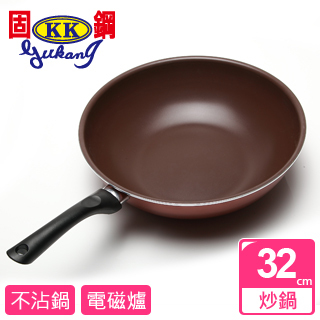 【固鋼】褐牙陶瓷不沾深炒鍋32cm(適用電磁爐)臺灣品牌