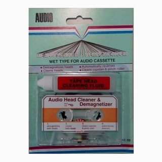 Trio Audio錄放音機濕式消磁清潔帶KC-02,採用特殊設計之滾輪,能使清潔液以等距分段之方式潤濕帶身,磁頭在清潔帶的擦拭下,得以順利完成清潔之目的。且兼具清潔滾輪及消除有害磁性之功能。