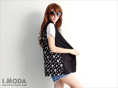 價格漂亮 人氣推薦[時尚質感~開襟翻領後拼骷髏圖案長版無袖背心?2色 ] 你喜歡嗎? 我真的很推薦 趣味小物 價值投資 買到你就賺到