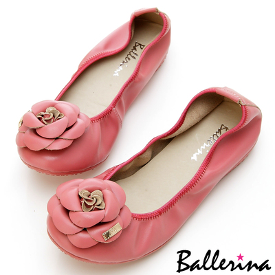 Ballerina★柔軟彎曲!山茶花牛皮彎曲娃娃鞋(紅)