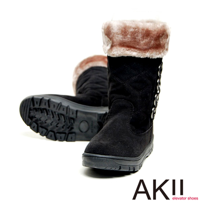 AKII韓國空運?雙環內鋪毛中筒輕量菱格車線雪靴-黑色