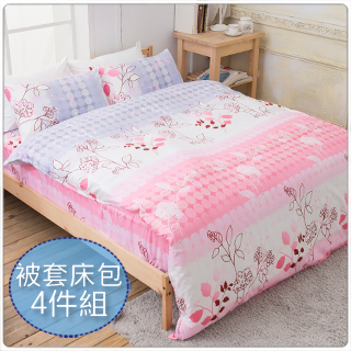 【小資族專用】臺灣製!舒柔纖維被套雙人床包孕馦?都毓篢I-粉)