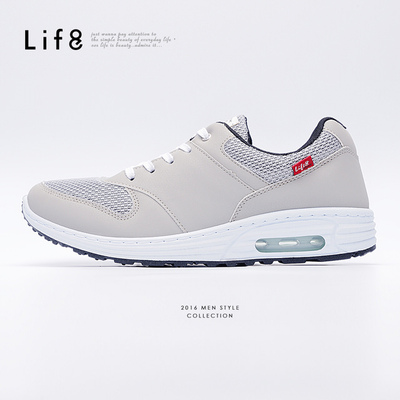 運動女鞋品牌 ◎最適合送人禮物 【Life8】MIT。雙色皮革。透氣網布。AIRCUSHION運動鞋-灰色(09286) 最後機會