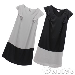 【Gennies奇妮】低調典雅雙色拼接荷葉袖春夏孕婦洋裝(兩色可選C1137) 商品網址: http://www.momoshop.com.tw/goods/GoodsDetail.jsp?i_code=2643773&memid=6000007870&cid=apuad&oid=1&osm=league