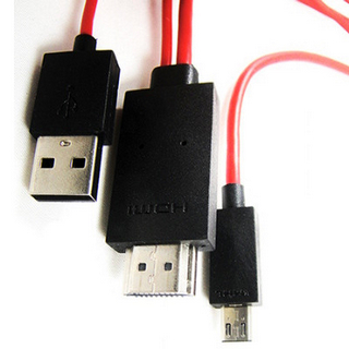 2. 須使用相容規格的USB 充電器,才能顯示影像至電視,手機螢幕上方會顯示HDMI