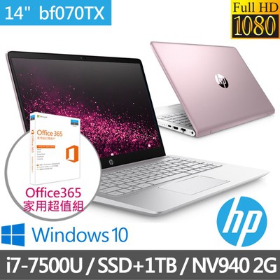 推薦產品 【上班族省錢大作戰】【HP】Pavilion 14-bf070TX 14吋筆電-玫瑰金(i7-7500U-8G-256G+1T-940M-2G-Win10)+Office365 家用...