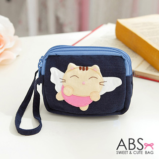 推薦開箱~【ABS貝斯貓】可愛貓咪綿布小錢包 卡片夾 小提包(88-179深藍)