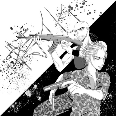 「他媽的!車子爆炸是你們這兩個王八蛋搞的鬼嗎?」剛剛開車的幹員掏出手槍對準著眼睛亮紅光的傢伙怒罵。 「你們是什麼單位的!?」右座的幹員也瞄準前方兩人。第三車的幹員們也紛紛舉起手上的槍,緩緩的向前...