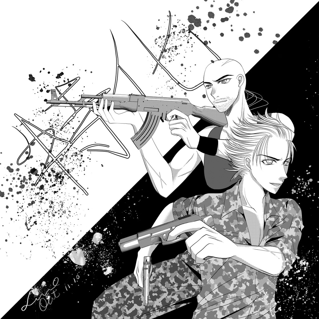 說實在的,當初收到慧喬化的這張圖時,我第一個反應就是狂笑,真沒想到用少女漫畫的風格畫出來的月飛X五毛,居然這麼有BL味,看的我都害羞起來了!也許未來這部小說能紅時,真有人會寫或是畫出相關的BL小說漫畫喔!!