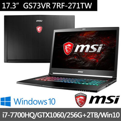 【MSI微星】GS73VR-271 17吋電競筆電(i7-7700HQ/16G/256+2T/GTX1060 -6G/win10)