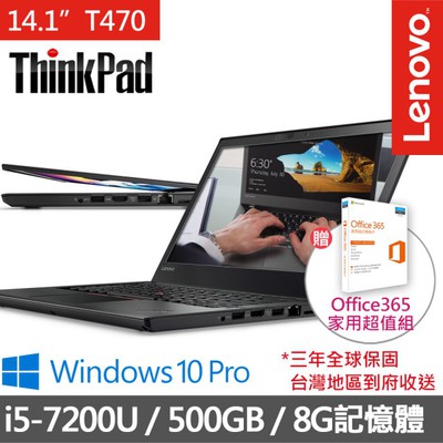 好康平台 【折扣】【ThinkPad】T470 14吋商務輕薄筆電(i5-7200U-8G-500G-Win10 Pro)含Office 365家用版