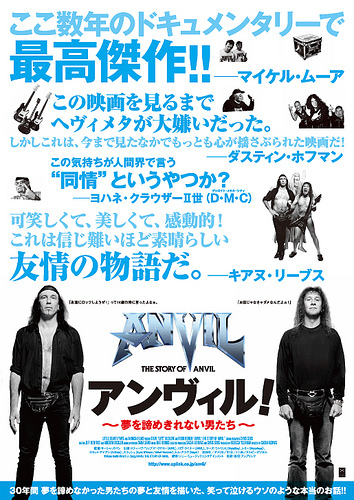 「重金屬叔要成名」早在2008年初就問世(日舞影展)、2009年正式上映並參展過台北金馬影展(前名為「金屬大叔要成名」),如今才有片商引進作院線上映(雖僅單廳)仍是台灣觀眾的一大福氣。影片主角顧名思義就是兩位來自加拿大的「重金屬叔」大嘴和羅布,兩人組成的Anvil樂團在80年代曾是紅極一時、甚至被視為開創金屬樂新氣象先鋒的「一曲樂團」,可惜隨後旋即聲望直落,直到身為少時身為忠實樂迷、如今從事電影的導演薩夏葛瓦西決定拜訪、甚至幫助他至今仍相當崇拜的兩位偶像,他們長達30年不離不棄、難能可貴的親密關係,才得以被世界看到。