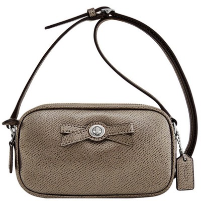 熱賣推薦分享~【COACH】蝴蝶結亮面皮革雙層斜背包-金色(買就送璀璨水晶觸控筆)