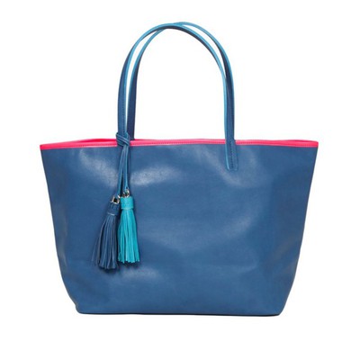 熱賣推薦分享~【LILI RADU】德國新銳時尚設計品牌 手工流蘇雙色時尚 小牛皮肩揹包 購物包(麗麗藍-霓桃)