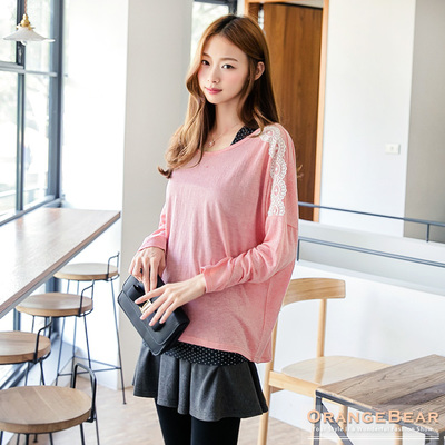 [分享推薦]【甜蜜開春-任選58折】可愛好感~兩件式點點長版內搭配緹花裝飾落肩上衣.2色