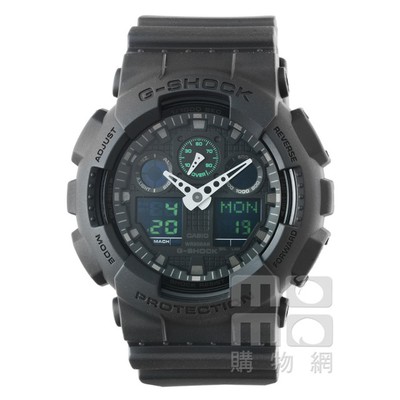 服務這麼優,當然在網路購物最好啦~~你一定要來看看【CASIO】卡西歐G-SHOCK 雙顯鬧鈴電子錶-黑綠(GA-100MB-1A)~~
