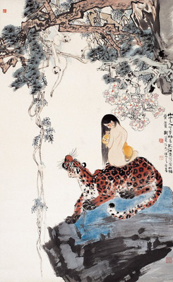 藝術家 劉旦宅 (大陸)<山鬼圖>『被薜荔兮帶女籮,乘赤豹兮從文狸』是 屈原的原文裡對山鬼形象的描述. 難得水墨畫裡有裸女的題材,這些男畫家乾脆讓山鬼全脫了。他問她:「你多大?」她反問:「...