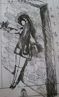 (我人生中第一張 可能也是唯一一張版畫 不要問我想表達什麼 ....我也不太清楚)我殺了他。彷彿故事接龍般,情節的設定如此,於是記憶從這裡開始,只能往前。我想毀屍滅迹,於是把他煮了,卻把他煮成一尊蠟像...