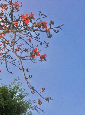 木棉花像是英雄樹,花開在高挺的樹梢上,總也讓人仰望,真想飛上前去賞個夠。 一個絕佳的木棉賞點,台中高鐵站。 在此高處賞木棉,儘可低眉。 《低眉》 我獨自...