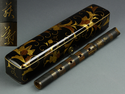 希少一節切古管 煤竹金維 江戸期 蒔絵箱
