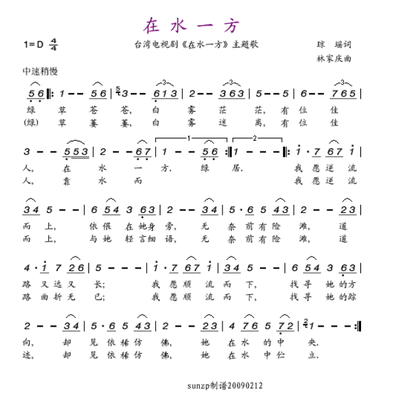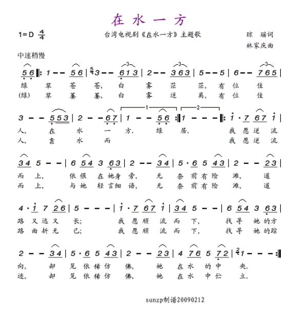 五孔尺八〞在水一方〝國語歌譜曲, (820)