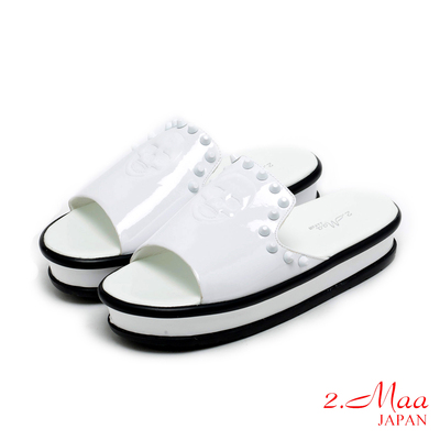 2.Maa 奔放時尚性感骷髏鉚釘牛漆皮休閒涼拖鞋-艷白 孕婦睡衣推薦