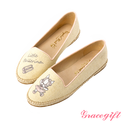 Grace gift X Crystal Ball聯名芭蕾HIPPIE閃布麻編便鞋 黃 慢跑鞋推薦
