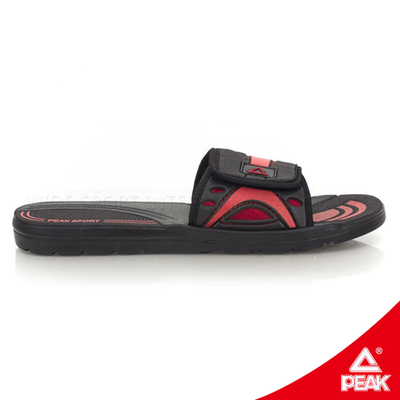 【PEAK】男休閒運動拖鞋-正黑-正紅 爽健機能襪