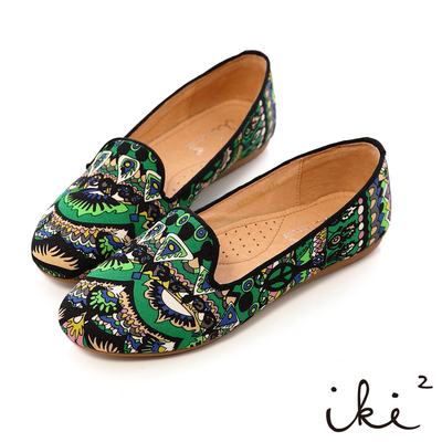 iki2淘氣女孩-幾何花布粒粒底樂福鞋-率性綠 莫卡辛鞋品牌
