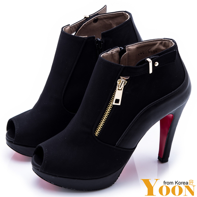 潤YOON正韓專賣。韓國製女神級美腿拼接拉鏈露趾高跟踝靴(黑) 行李箱ELLE HOMME
