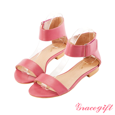 Grace gift糖彩甜心-純色寬版繫踝一片式涼鞋 桃 哺乳衣批發