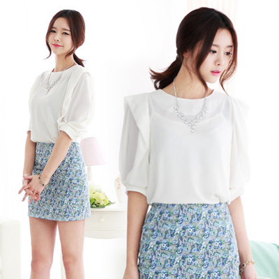特色澎袖圓弧領單色上衣(乳白) SZ by SZ TRENZ8荷蘭時尚